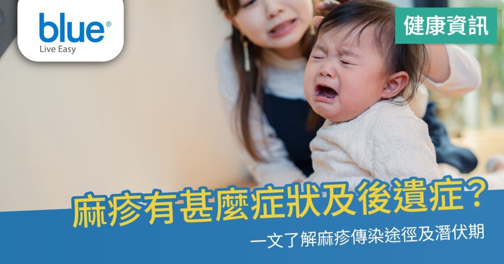 麻疹是一種具高度傳染性的疾病,麻疹潛伏期長、症狀易與感冒混淆,加上可能引發嚴重的麻疹後遺症及併發症,因此需特別警覺。了解麻疹的症狀及傳染途徑,對於保護自己與家人健康非常重要。為了進一步保障自己與家人面對傳染病風險時的安全,大家可考慮投保Blue的「WeCare 個人意外保障計劃1」,計劃涵蓋包括麻疹、登革熱、禽流感等15種傳染病的全方位保障,陪伴你面對防不勝防的傳染病,外遊期間更可獲雙倍保障額高達HK$400萬,如不幸遭受三級燒傷而燒傷面積達全身20%或以上亦可獲發全額保障,讓你與家人無論面對何種突如其來的健康威脅,都能多一重安心的守護,毋須為醫療開支煩惱。