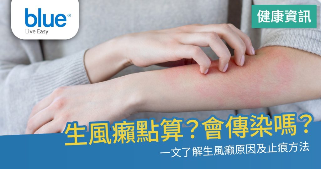 生風癩點算?雖然生風癩不會傳染給別人,了解生風癩的原因和止痕方法可以有效處理及避免風癩出現。Blue「WeMedi 門診保」為你提供全面門診服務,包括普通科和專科門診,讓你隨時隨地輕鬆就診。計劃同時可以為你的家人提供保障。另外,「WeGuard藥劑EASY保」亦涵蓋了多種藥物及保健產品,為你的日常健康全面護航,讓你和家人擁有更健康、更安心的生活。
