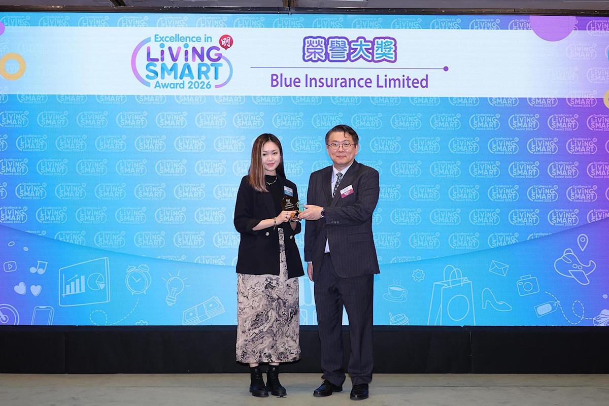 Blue 於《明報》「智醒品牌卓越大獎 2026」再度勇奪「卓越網上保險體驗大獎」。此殊榮肯定了 Blue 在產品創新及數位流程的成就,貫徹「保險就係咁簡單」的品牌理念。